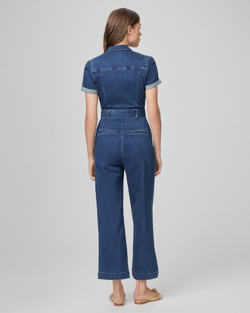 SKU: 6783F46-1921 Puff sleeves and a cropped wide leg silhouette bring an of-the-moment feel to this adorable dark indigo jumpsuit. Designed with a quilted belt, double chest pockets and a button front neckline, the Anessa Jumpsuit is the must have one-piece of the season.