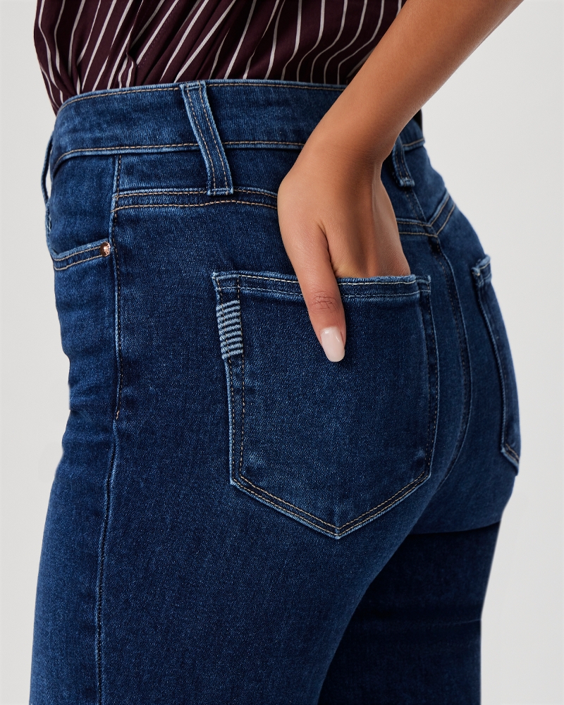 SKU: 5640F72-096 A vintage-inspired high-rise ankle flare. Cut from our TRANSCEND VINTAGE denim in an easy, everyday medium blue wash with natural fading, this style has the look of authentic vintage denim but is incredibly comfortable with plenty of stretch and recovery.