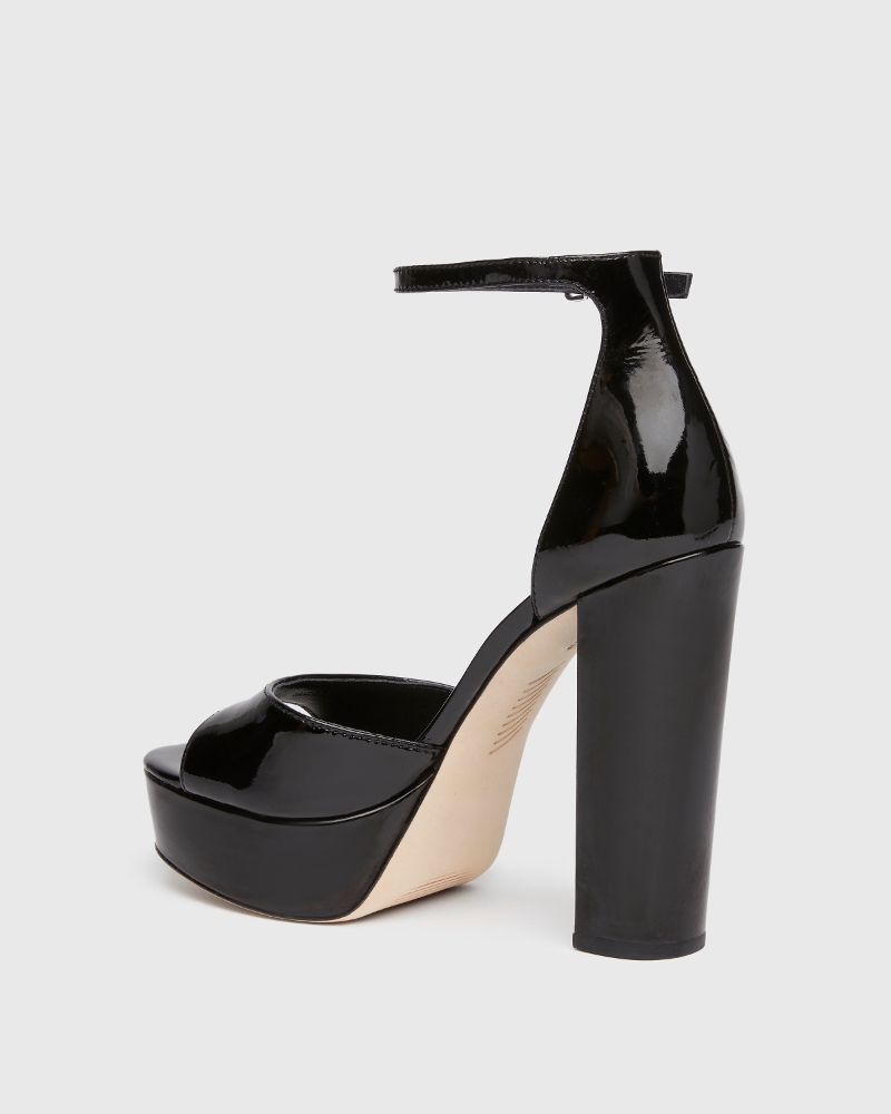 SKU: SH560813-BLP An update to our bestselling Camryn platform sandal with a rounded, open toe shape and scooped topline. Cory is designed in soft crinkle black patent leather and features a straight, slightly tapered modern leather-wrapped block heel and an ankle strap with a silver metal half buckle closure. The 35mm platform provides plenty of lift without sacrificing stability or comfort, and our signature cushioned insole guarantees a comfortable fit from morning to moonlight.