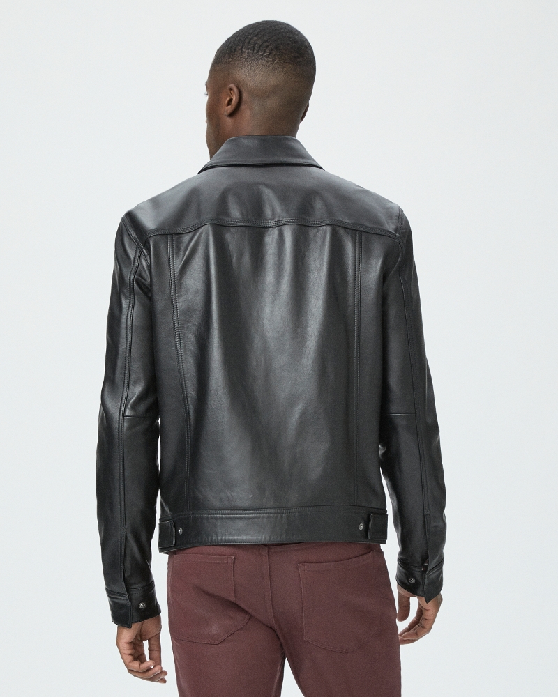 The Pedro Jacket is one of our favorite layering pieces of the season. This style has a classic shape and features a hidden snap front placket, double chest pockets with snaps, and side entry pockets. Expertly crafted from black leather with an ultra-soft feel, this jacket is a must-have piece for transitional weather.