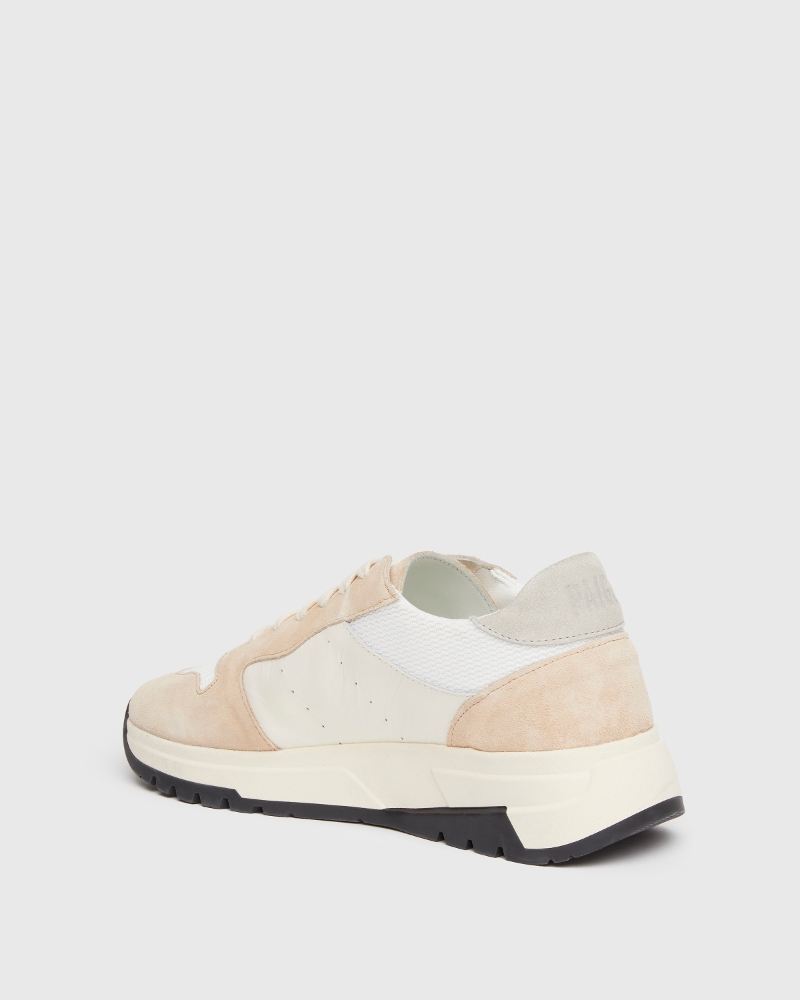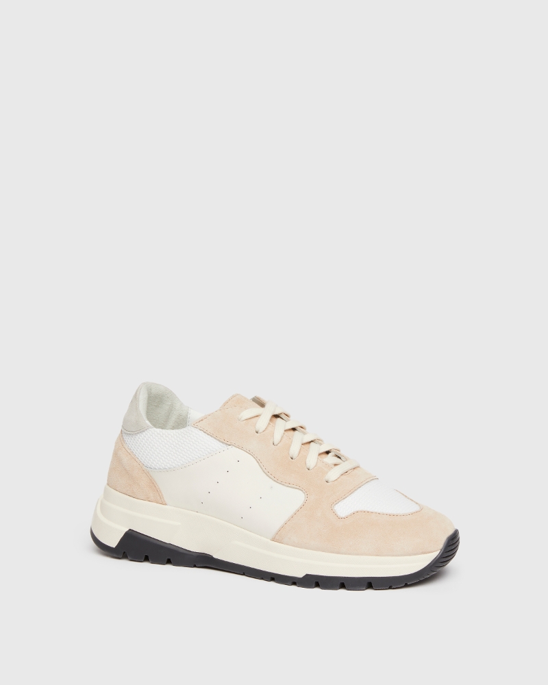 SKU: SH257416-BSH Mila is our new runner sneaker style with mixed material and coloring for a sporty, yet feminine look. This blush pink pair is crafted from a mix of suede, soft grain leather, and mesh, and features an off-white and black bi-color rubber platform outsole with flexibility for all-day wear, soft, flat off-white cotton laces, and a padded, cushioned removable insole for added comfort.